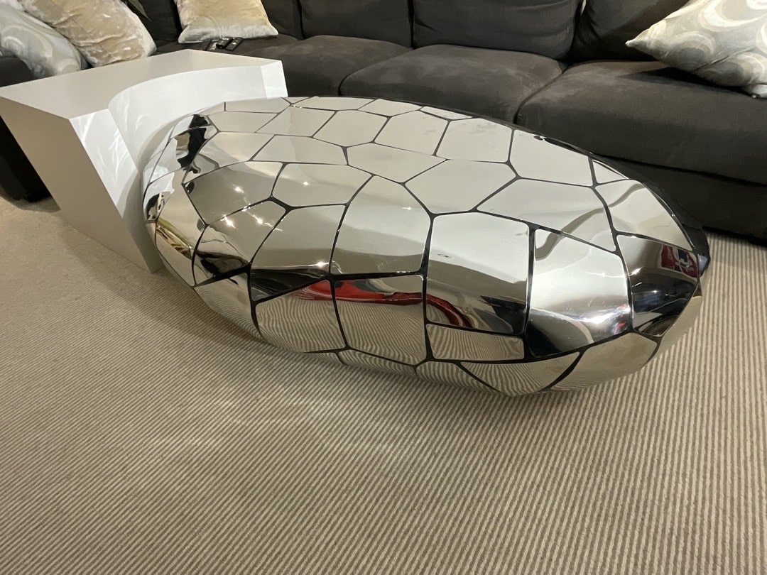 Table basse ovale en métal argenté « Crazy Cut » de Phillips Collection, effet miroir