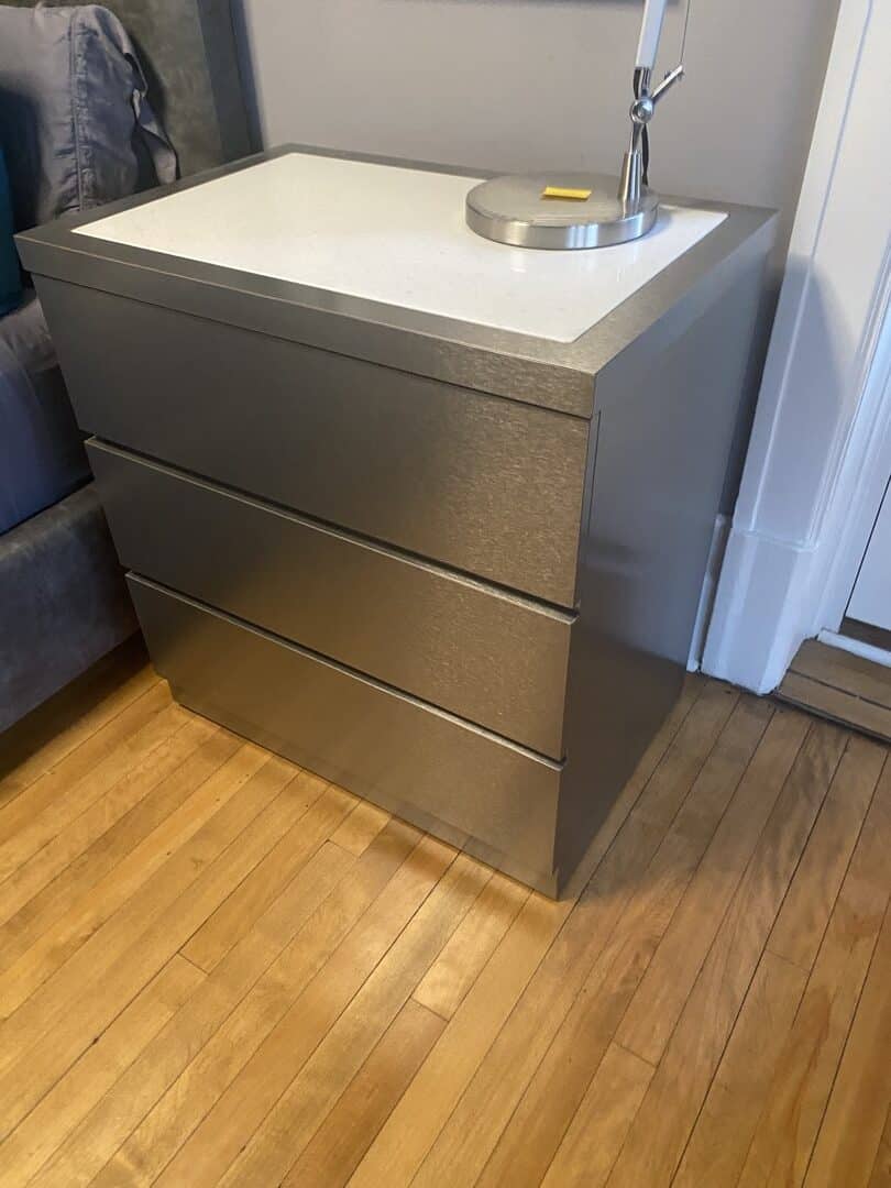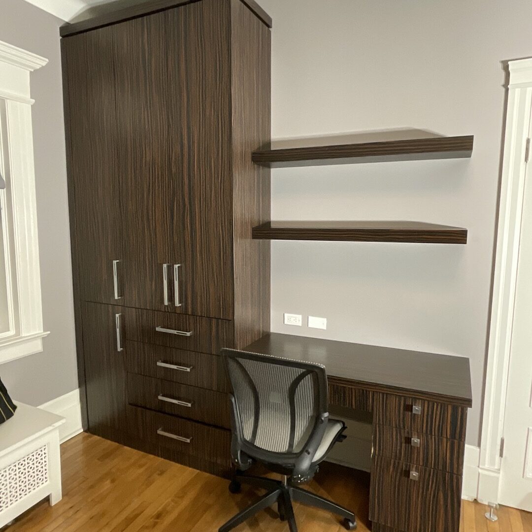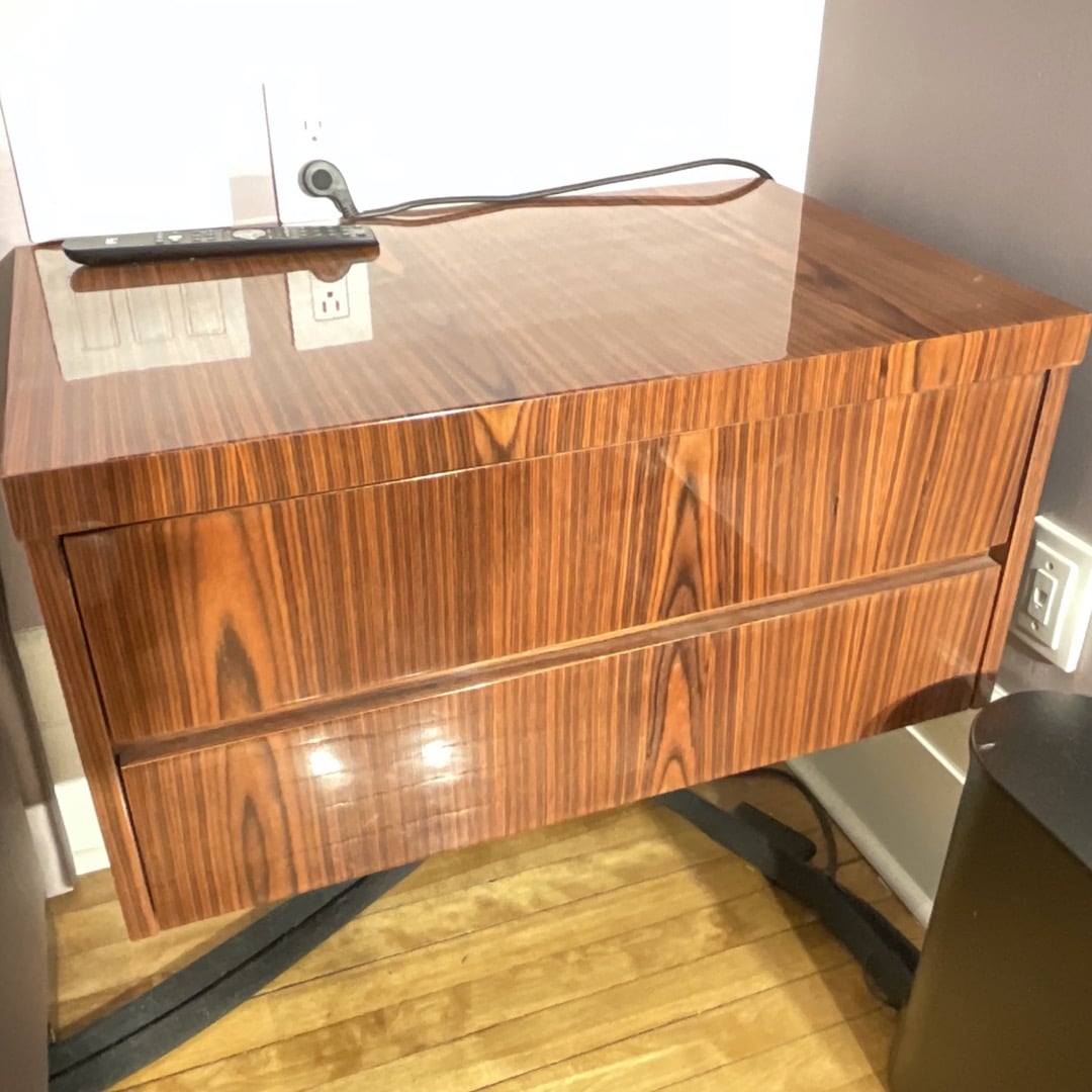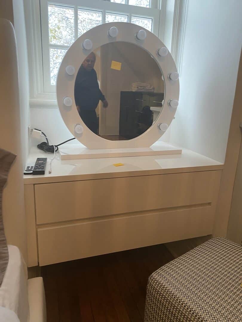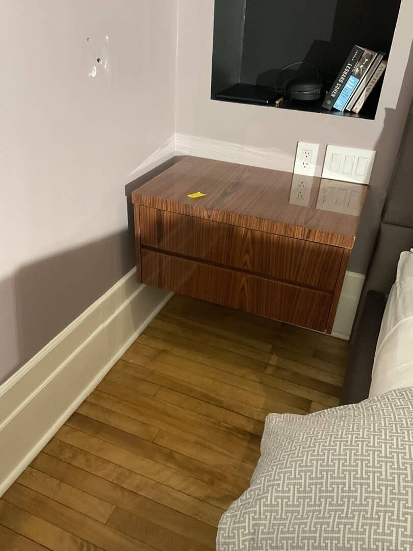 Veuillez noter que certains meubles sont de magnifiques encastrés qui peuvent être démontés. Veuillez apporter vos outils. Parmi les encastrés, on compte les deux grandes penderies, les tables de nuit en bois zébré, les têtes de lit, ainsi que deux grandes commodes — l’une noire et l’autre blanche.