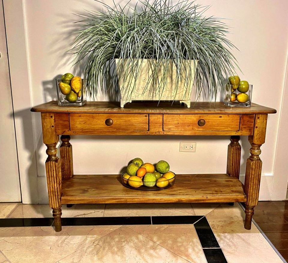Table de salle à manger style papillon, 6 chaises à dossier échelle. Fauteuil pivotant restauré. Tête de lit, lit et matelas très grand format (King). Tête de lit double, lit et matelas. Bureau. Armoire de classement. Paire de tables d’appoint. Paire de tables de nuit. Console demi-lune. Table-console en pin. Sièges en toile en forme de cube (ottomans) avec design d’écriture française.