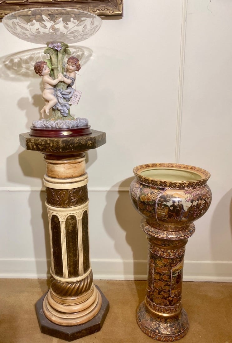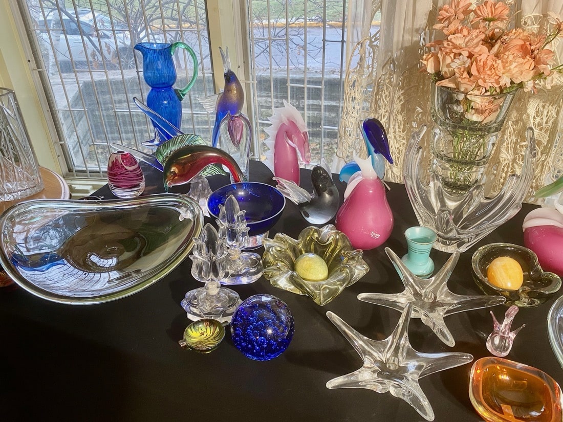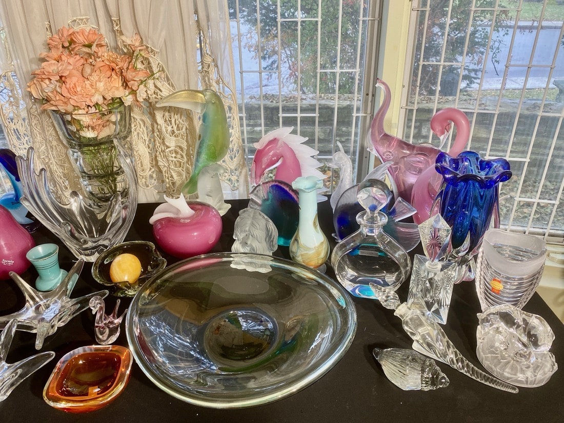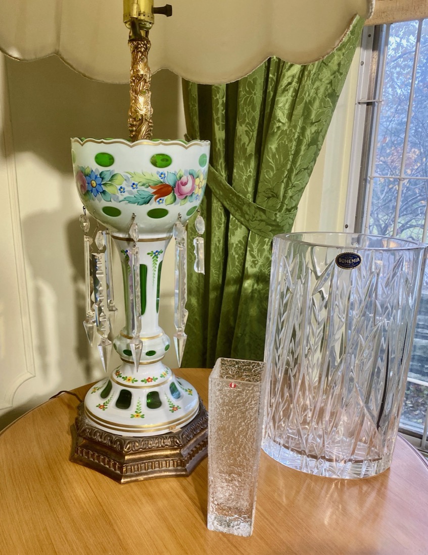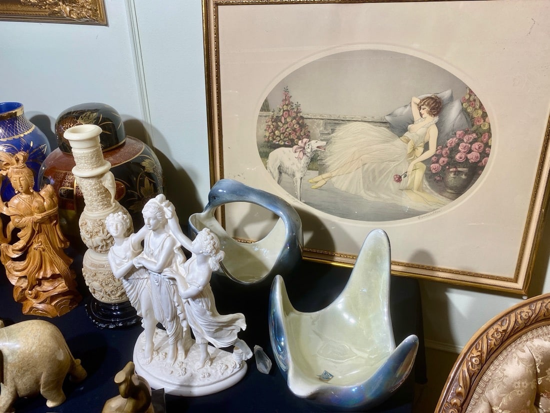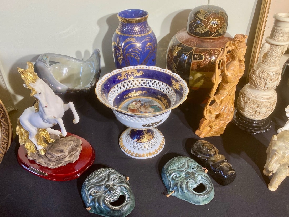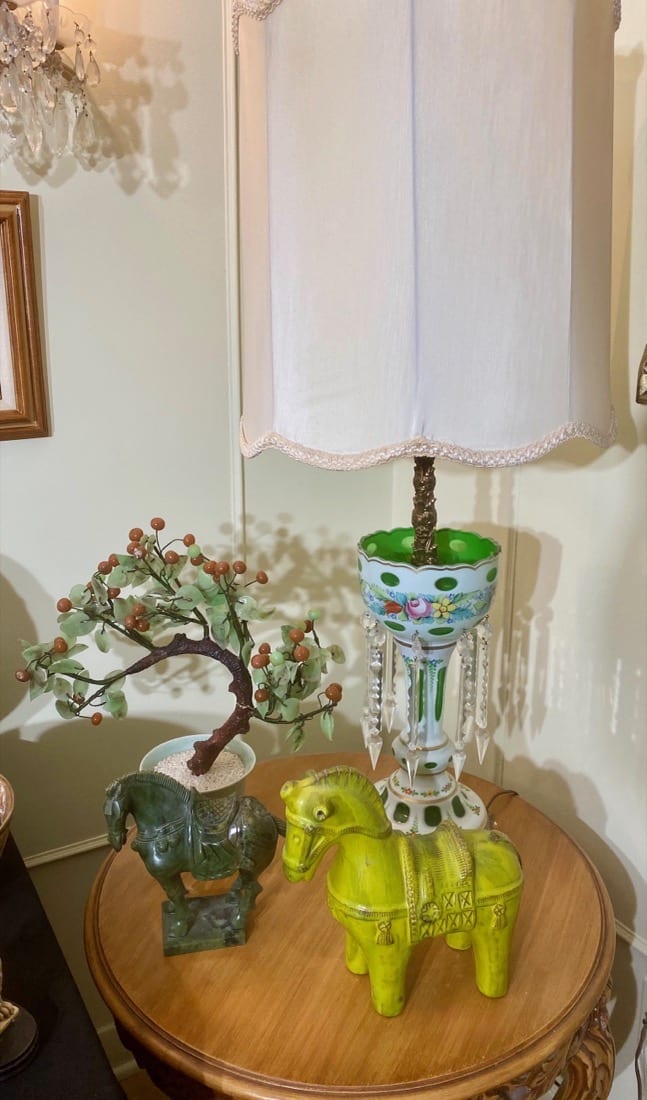 Decorative glass, decorative plant stands, lovely vintage lamps, Chinese porcelain, Italian glass…