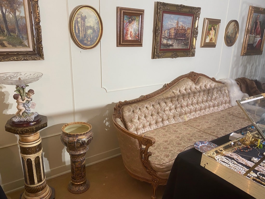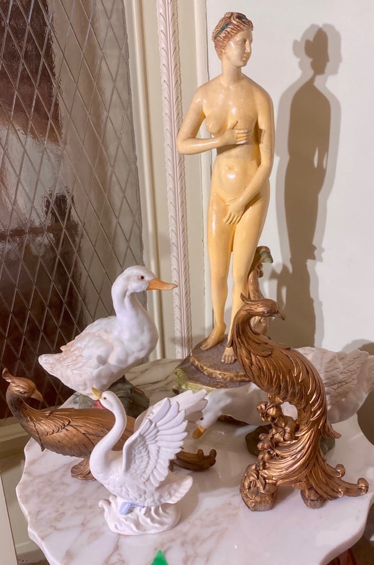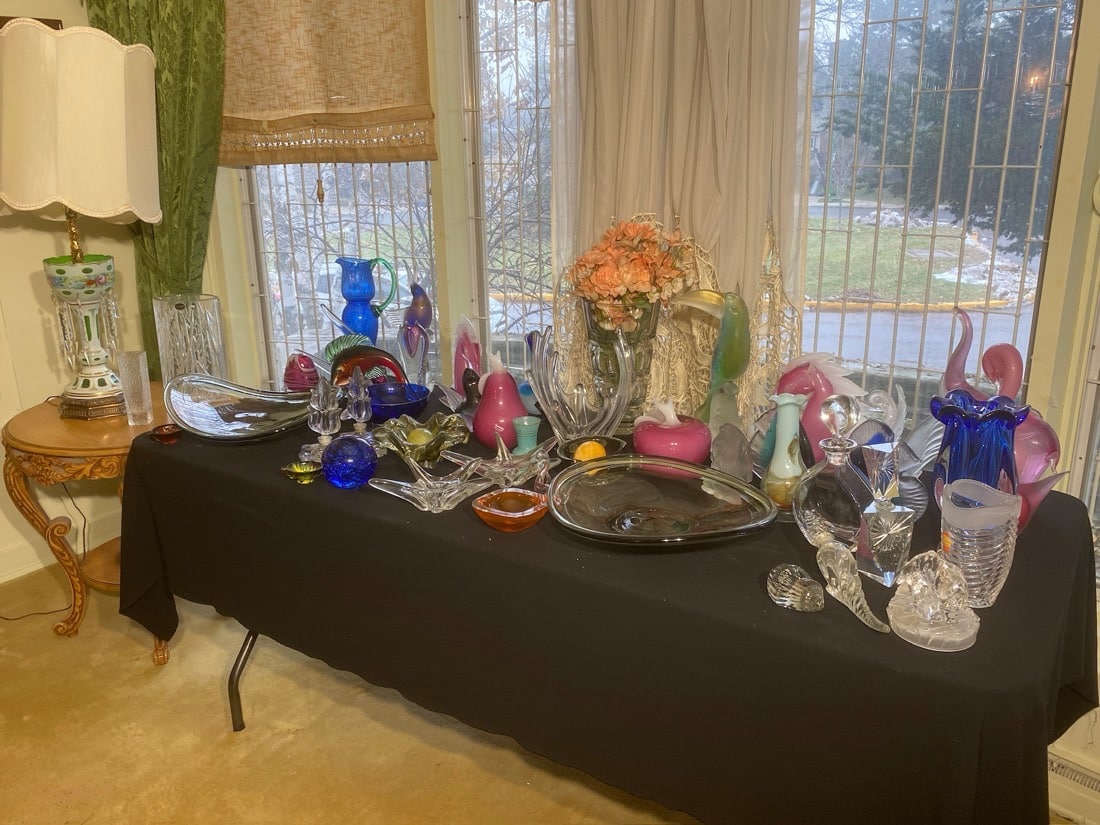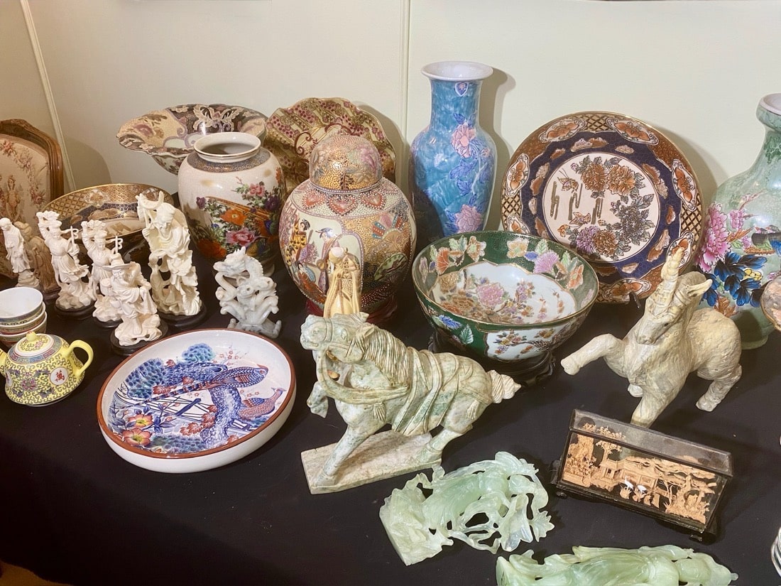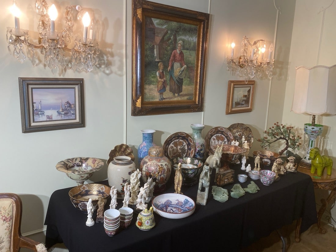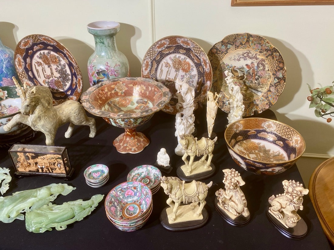 Decorative glass, decorative plant stands, lovely vintage lamps, Chinese porcelain, Italian glass…