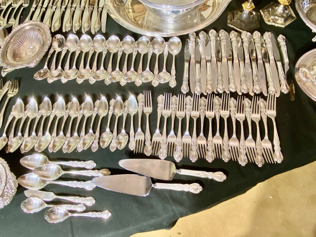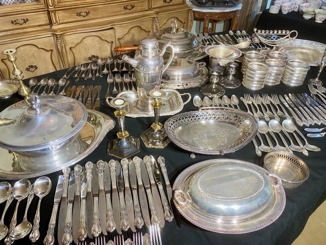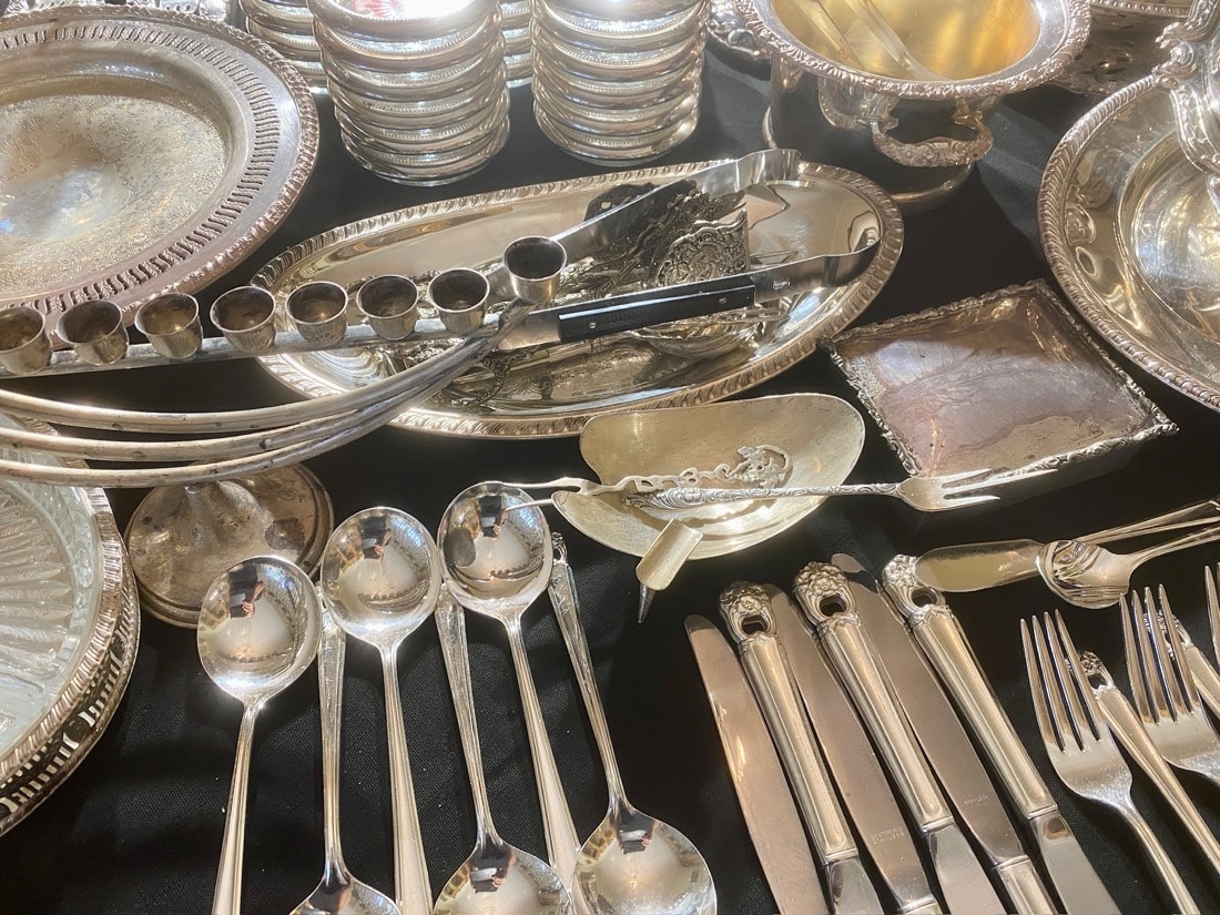 Lots of lovely Silver plate hollowware and flatware sets; Birks “Queens”,1847 Rogers Bros “Eternally Yours”, Roger Bros “Heirloom”, Community “Ballad”, Stainless sets, and more…
