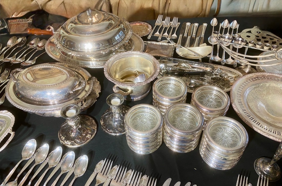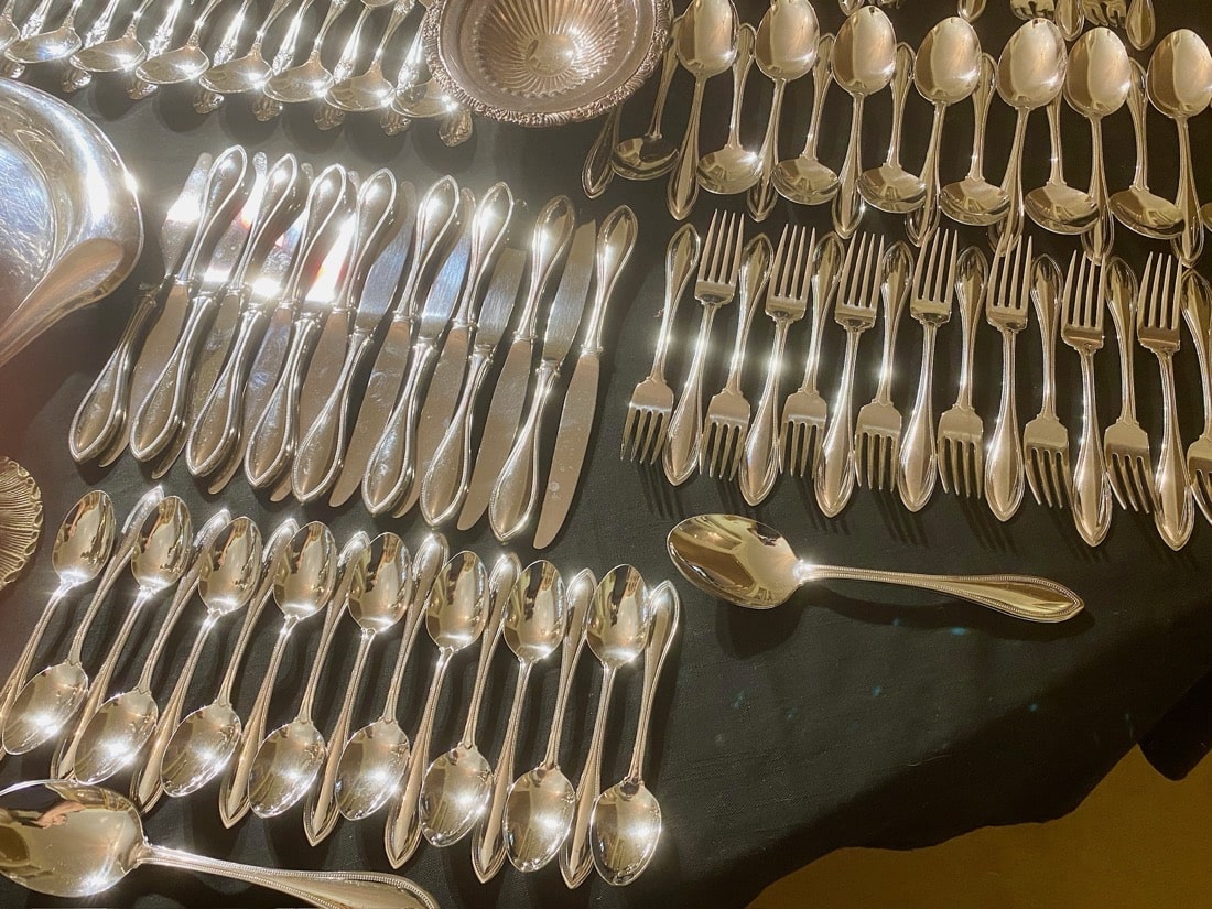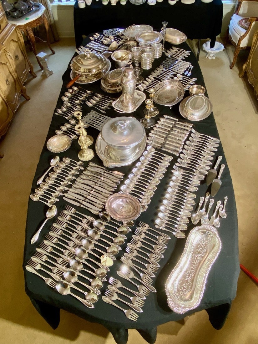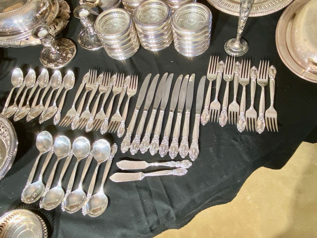Lots of lovely Silver plate hollowware and flatware sets; Birks “Queens”,1847 Rogers Bros “Eternally Yours”, Roger Bros “Heirloom”, Community “Ballad”, Stainless sets, and more…