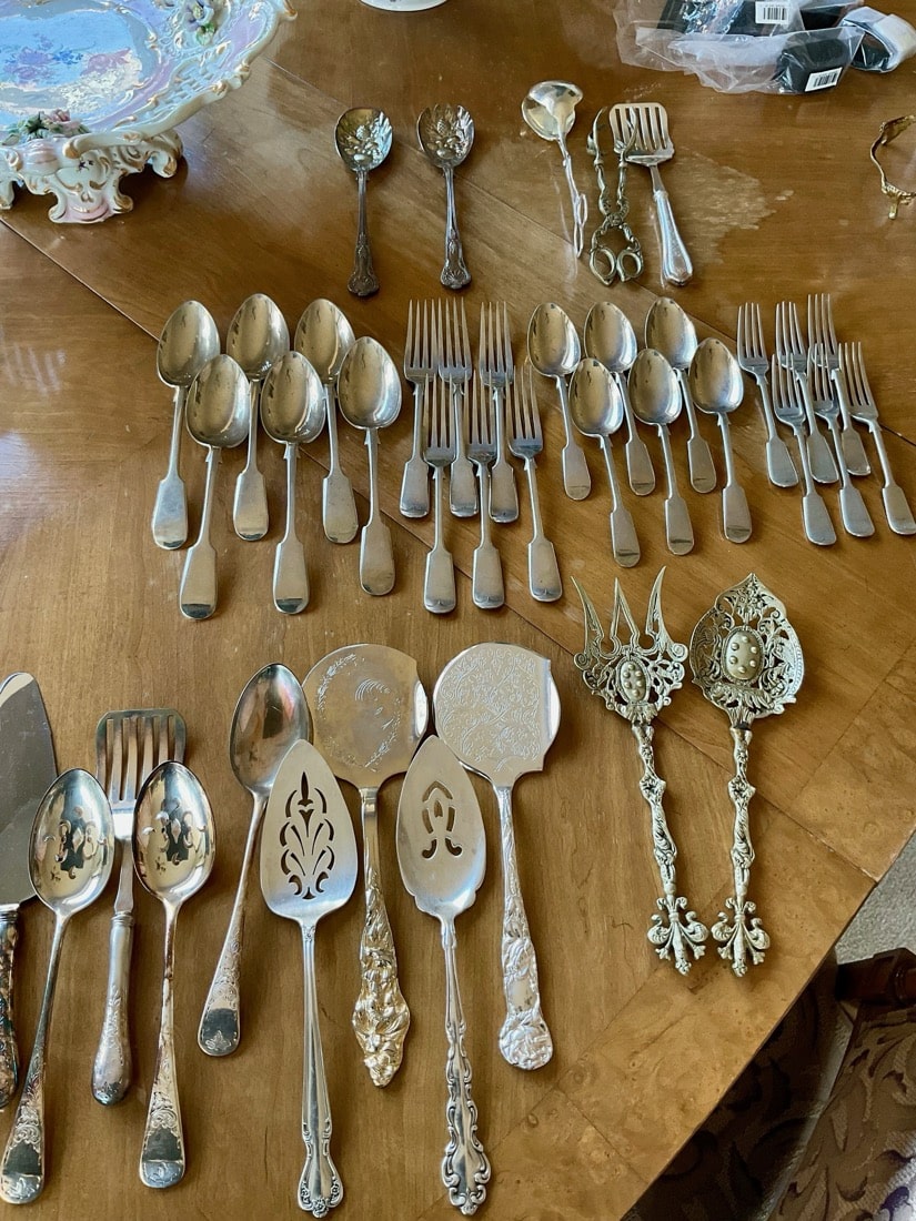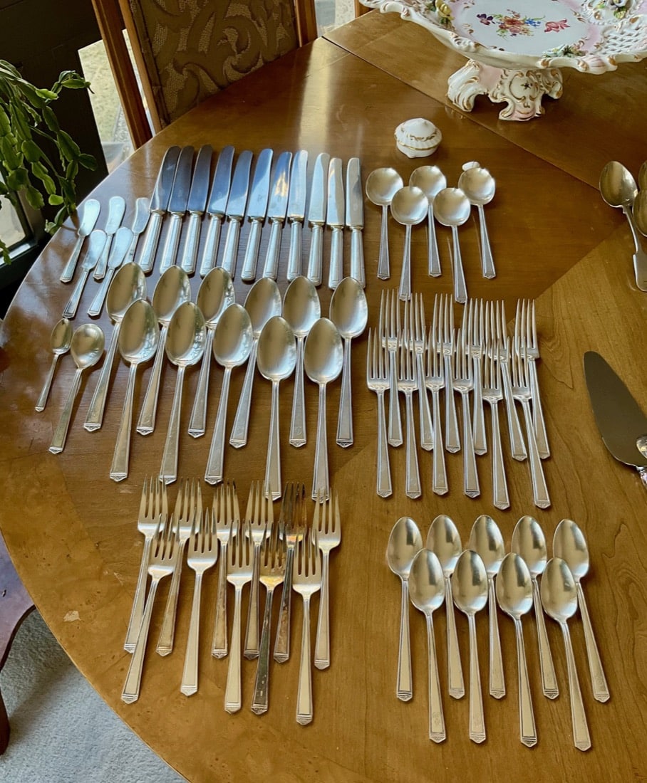 Silver; Set of “Nevada Silver” flatware. High-quality, nickel-silver, items produced in Birmingham, England, during the late 19th/early 20th century. Many vintage quality silver plate items.
