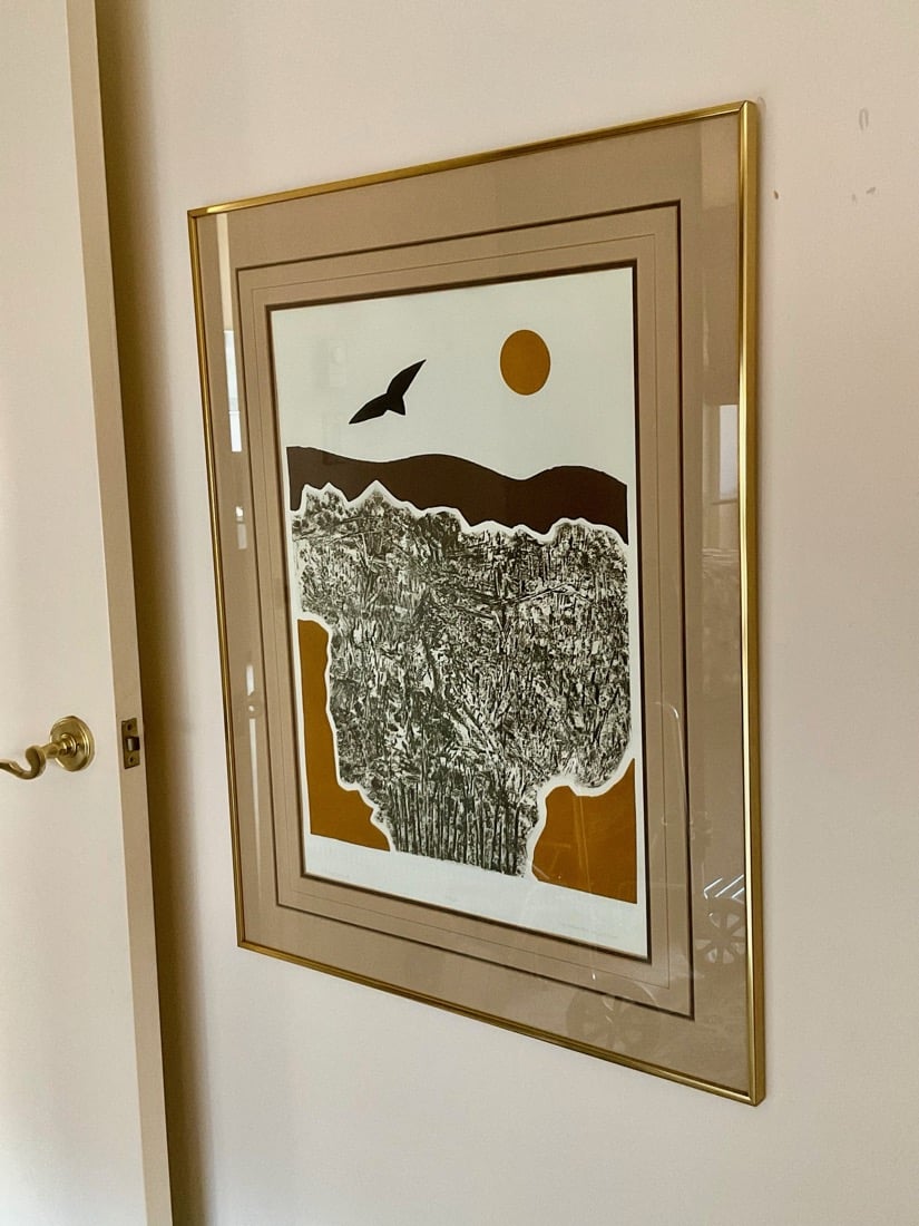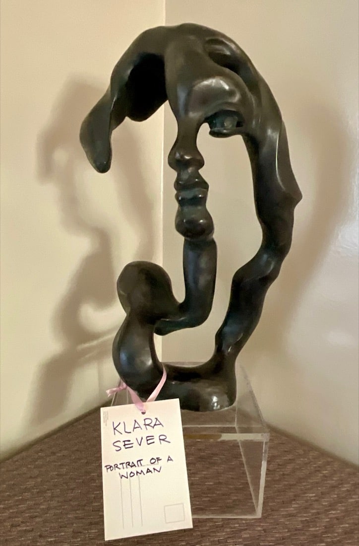 Several paintings. Some lithographs. Vintage 1979 “Portrait of a Woman” abstract sculpture by artist Klara Sever, produced by Austin Productions. Other small sculptures.