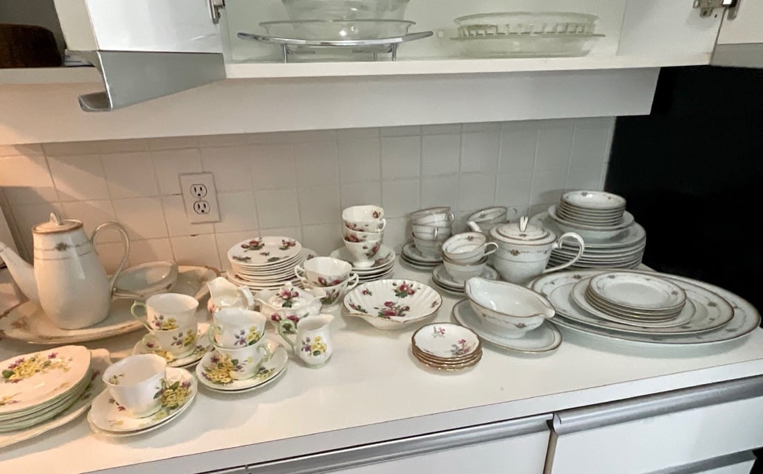 Noritake China (partial set) in the ‘Joanne’ pattern, Hammersley Bone China (partial set) in ‘Grandmother’s Rose’ pattern, Johnson Bros. (partial set) in the ‘Old English’ pattern, Plus other partial sets,